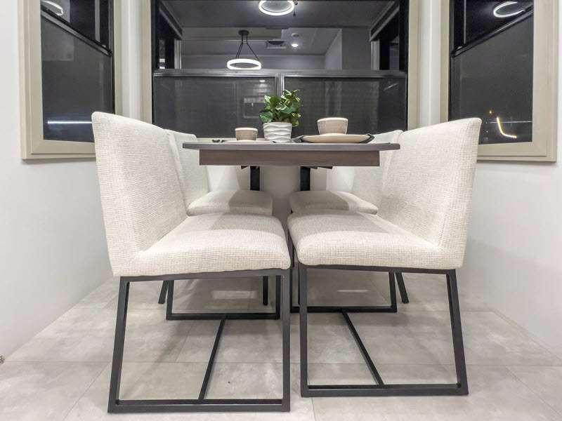 Each is built on a 101" wide body drop-frame super chassis, and includes the MORryde pin box system that utilizes a unique rubber shear spring to positively deal with rough towing and road shock. Some standard features that stand out include the chef-inspired professional grade stainless steel cooktop and Smart sink with a removeable cutting board, produce strainer and glass rinser, and the on-demand water heater with a whole house water filtration system. There is also an all-in-one enclosed and heated utility center to enjoy four seasons of camping, plus many more comforts.