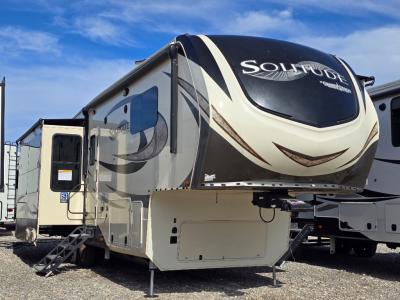 Choose a Solitude fifth wheel by Grand Design today, and experience full-time camping or extended-stay vacations with residential features, taller ceilings, deeper cabinets, and larger scenic windows!