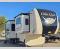 Load up your golf cart or motorcycle into the garage that measures 63" x 110", and is located below the rear master bedroom. Once at your destination you can enjoy your own queen bed with a residential style headboard, and a wardrobe slide that includes bench storage. You might even like to watch the 32" TV before going to bed. Someone can take a shower in the full bathroom with a trough sink and single faucet while another is making breakfast in the middle kitchen which offers two slides for more space around the kitchen island. You might like to use the outside kitchen and exterior entertainment center as well. The front living area is up the steps and provides a separate space to relax and unwind with dual opposing slide out sofas, power theater seats, and a front wall entertainment center with a fireplace and 50" TV.