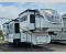 An active family will want this fifth wheel with its exterior basement pull-out tray that measures at 48" x 115" to load up your kayaks and such. Just above this area is the master suite with a rear bathroom that offers a residential shower, a porcelain toilet with soft close seat, plus a wardrobe and shelf storage. The king bed slide gives you more floor space, and you will have a seat, a flip-top dresser, and a Smart TV to watch. The half bath is next to the main entry which is super convenient, and the middle kitchen is separate from the front living area. The cook will love the residential microwave, range and oven, plus the option to add a residential refrigerator, plus the pantry, and the extra counter space on the kitchen island with a stainless steel farm sink. And the views out of the atrium windows in the slide out which includes the floating dinette table are a must see. And when you need to watch the big game, the 55" Smart TV with pull-out fireplace below are up front with the dual recliner love seat and two sleeper sofas.