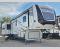 With two bedrooms in this fifth wheel, the whole family can camp together! The front private bedroom has a king bed slide to lay your head at night, a dresser with a TV, and a front wardrobe with storage shelves to keep your clothes looking nice. The second bedroom has a 91" x 64- 3/4" loft above a tri-fold sofa slide that is across from an area for a TV and wardrobe, and you could even switch out the sofa for an optional 73" desk to get some work done while you are away. Everyone can freshen up in the full bathroom with a shower with a seat and their bellies full with a kitchen island and 20 cu. ft. stainless steel refrigerator with ice maker. And for easy clean up add the optional dishwasher to the kitchen island. You can even cook your meals while breathing in some fresh air with the exterior camp kitchen. After a fun day outdoors, head to the rear living area and relax on either the hide-a-bed sofa or the power theater seating across from the fireplace and 50" flat screen TV!