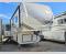 Luxury abounds throughout this fifth wheel! Starting in the kitchen with the island, two pull out pantries with extra countertop space above it, a glass top range with a pull-down spice rack in the range hood, and a pull out countertop for more prepping space. The full bathroom has a 48" x 30" fiberglass shower with a seat, decorative glass enclosure, and skylight above it for more natural lighting as two get ready at once with the dual sink vanity. Sleep like a baby in the front private bedroom on the king bed slide with storage underneath and keep your clothes looking their best with the front closet that has a clothing hamper and an area prepped to add the optional stackable washer and dryer. The rear living area offers true relaxation with a hide-a-bed sofa and power Thomas Payne theater seating across from the entertainment center with a 5,000 BTU decorative fireplace heater and 50" LCD HDTV to watch your favorite movies!